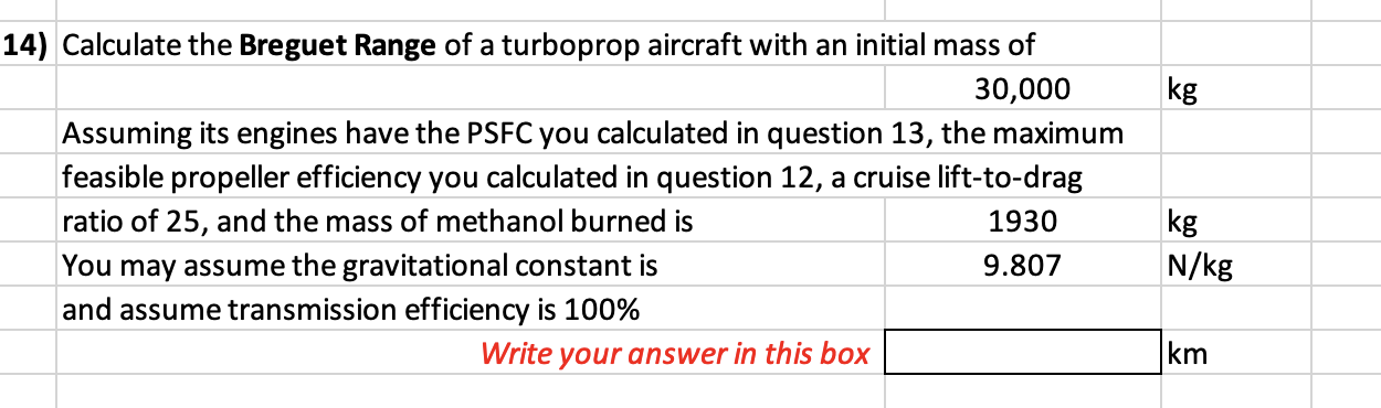 Solved 14 Calculate The Breguet Range Of A Turboprop Chegg Com