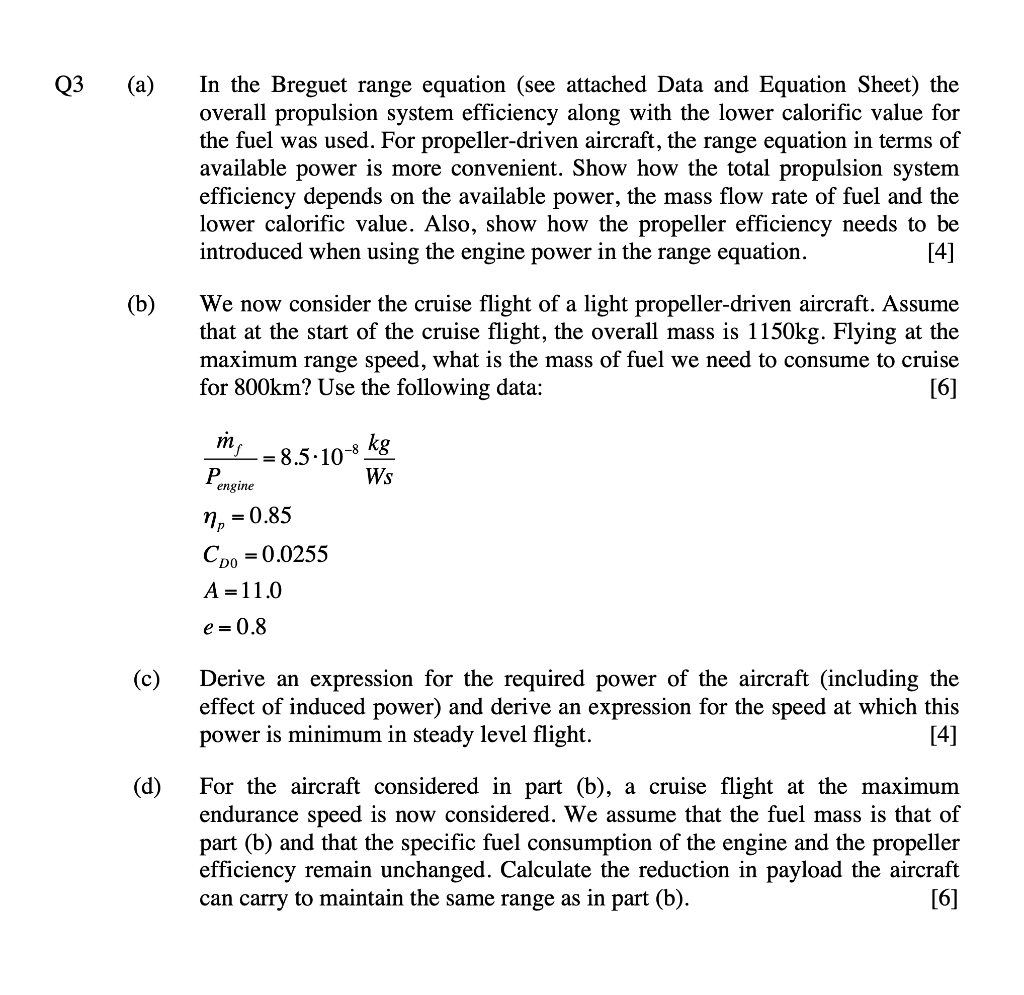 Solved Q3 A In The Breguet Range Equation See Attached Chegg Com